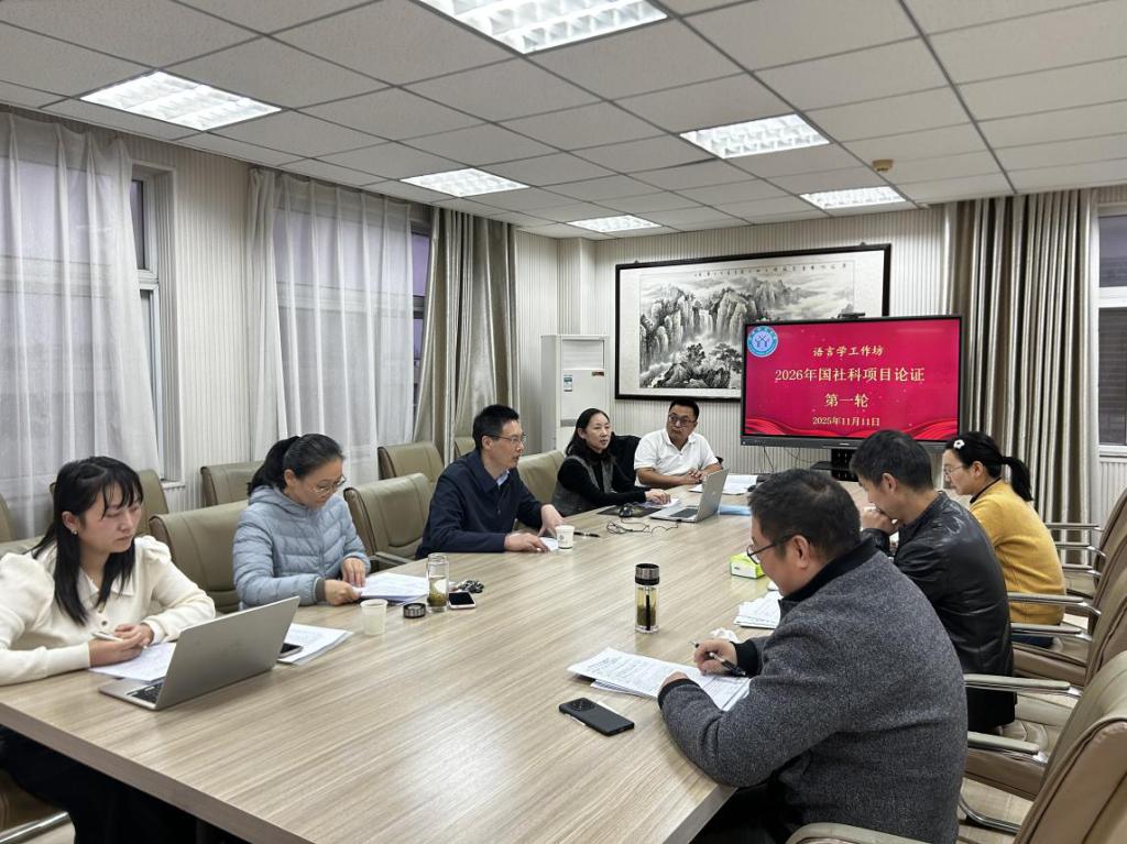 在人文楼五楼会议室举办2026年度国社科项目申报工作坊(语言学)第一次选题论证会。会议由王辰玲老师主持。