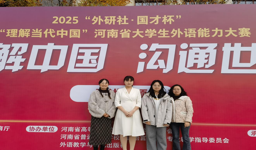 11月7日至9日,由河南省教育厅、外研社主办的河南省赛区“国才杯理解当代中国”演讲比赛在河南大学(郑州校区)举行。本次赛事不仅是河南省内高水平英语竞赛的权威舞台,更是深化外语教育改革、推动课程思政建设的重要实践。在此次赛事中,我院荣获2项奖项:其中,2024级研究生赵敏玉同学荣获省赛特等奖,并在全国总决赛中荣获英语组国际传播综合能力赛项银奖;2024级英语2班郭郝冉同学表现亮眼,斩获省赛一等奖。