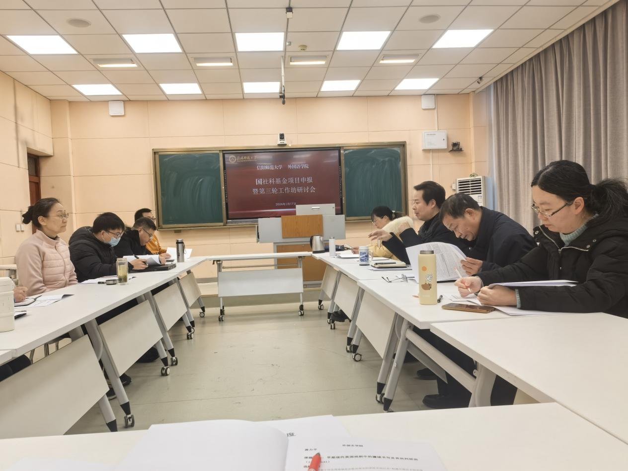 “2026年国家社科基金项目申报专题学术工作坊”第三次论坛在人文楼603会议室举行。论坛举行之前,工作坊收集到本院23份项目论证书,根据项目论证书质量给予评分,并书面通知修改具体事项。